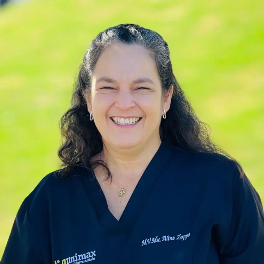A Profa. Aline Machado de Zoopa é médica veterinária formada pela FMVZ-USP, com residência e mestrado em Cirurgia, atuando como professora desde 2002 e com forte experiência em cirurgia e oncologia veterinária. Atualmente realiza atendimento oncológico e cirúrgico no IOVET, coordena as Clínicas Veterinárias da Anhembi Morumbi e exerce funções acadêmicas e de consultoria, além de participação ativa em associações da área e em cursos de pós-graduação em clínica, cirurgia e oncologia veterinária.