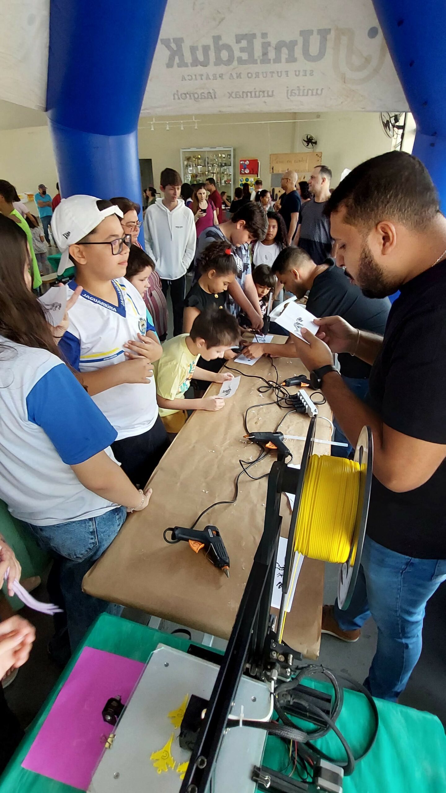 Os participantes que passaram pelo estande da UniFAJ puderam experimentar, na prática, o funcionamento de uma impressora 3D e criar seu próprio modelo tridimensional.