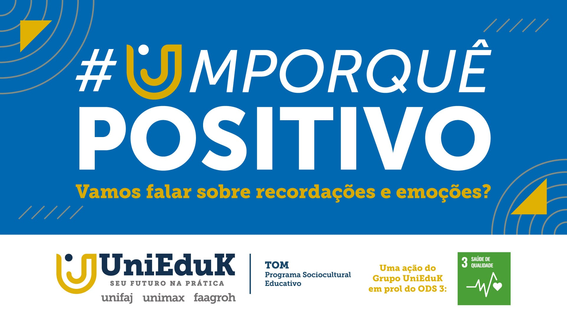 Se quiser conhecer mais sobre o Projeto #umporquêpositivo, os alunos do Grupo UniEduK estão  esperando por você  hoje, a partir das 19:00h, nas cantinas da UniFAJ - Campus 2 e UniMAX - Campus 1.