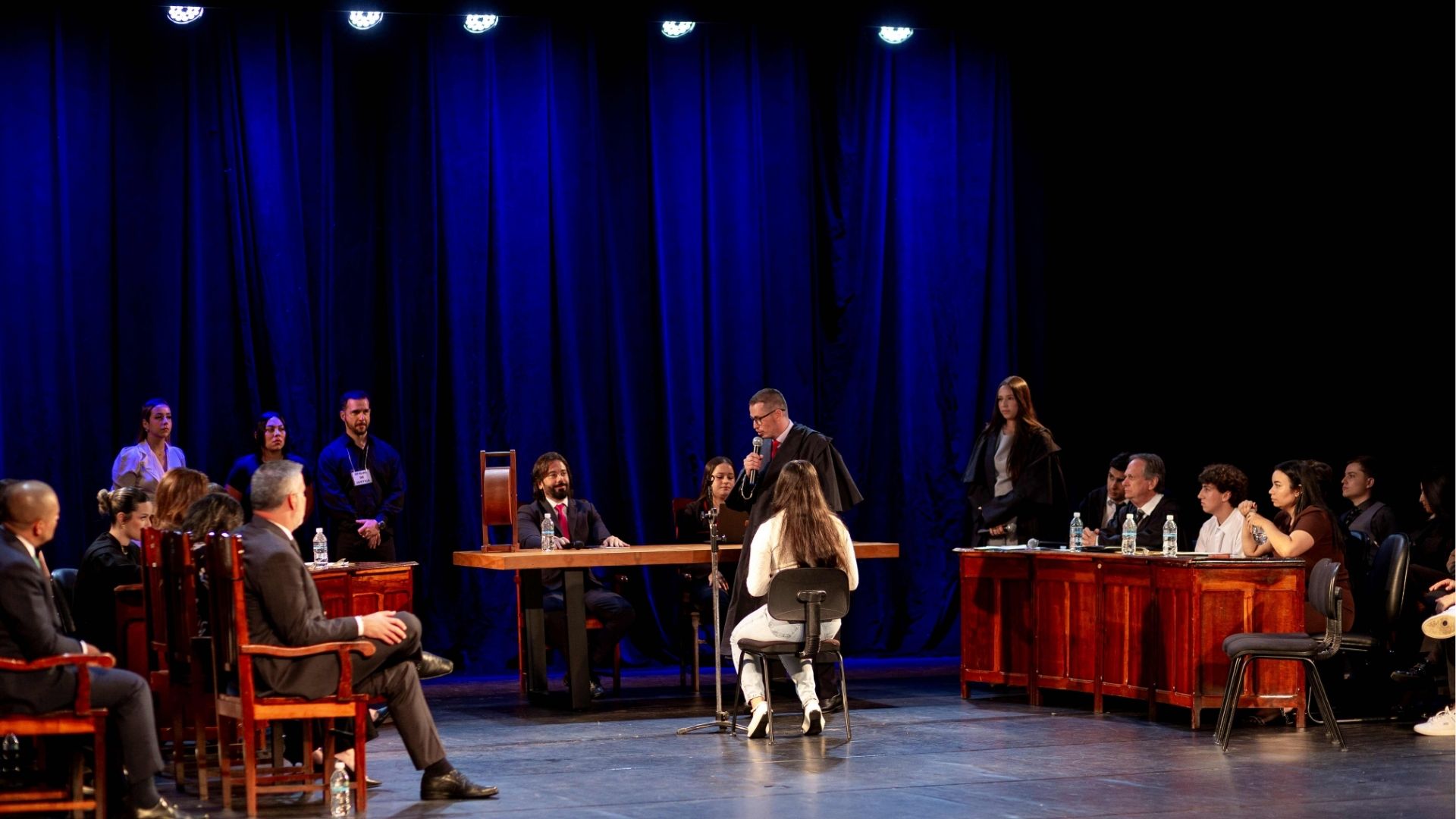 Os alunos do 2º semestre assumiram integralmente a condução do plenário, desempenhando funções essenciais como defesa, acusação, jurados, oficiais de justiça e demais papéis indispensáveis ao rito do Tribunal do Júri.