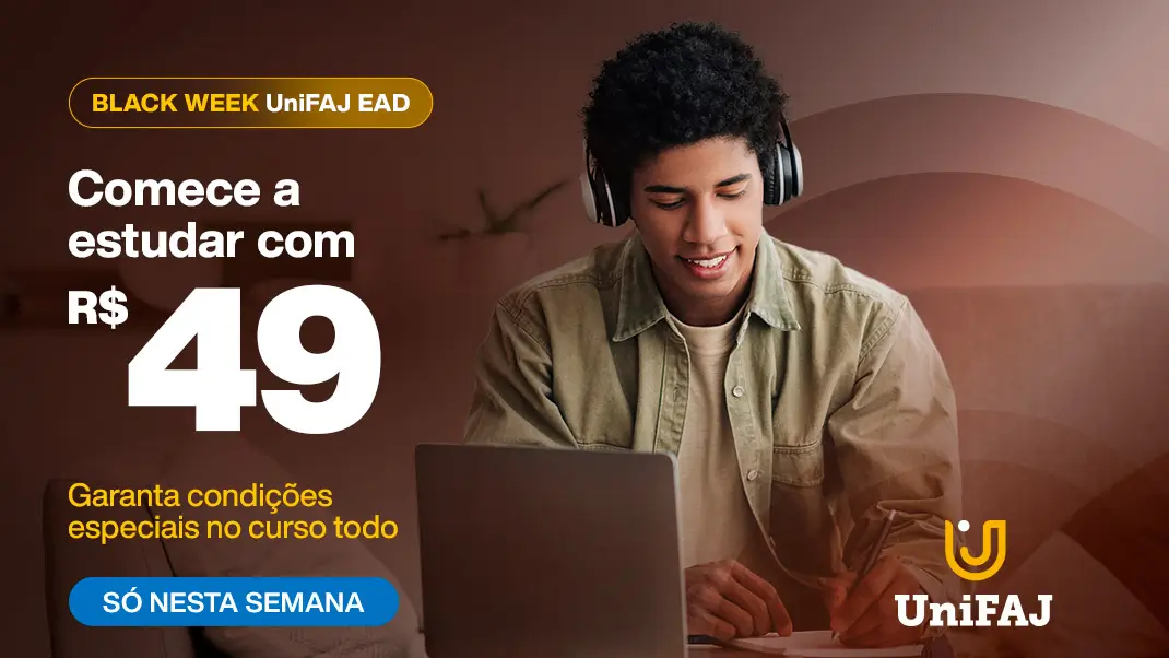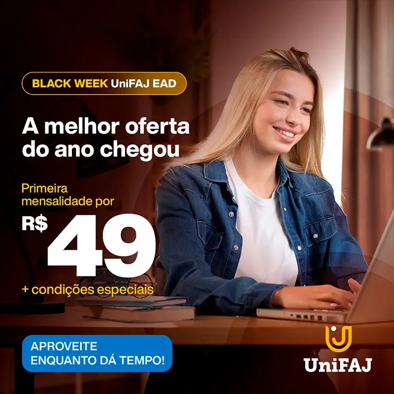 Durante a Black Week UniFAJ EAD, você garante a 1ª mensalidade por apenas R$49 e ainda condições especiais para o curso inteiro.